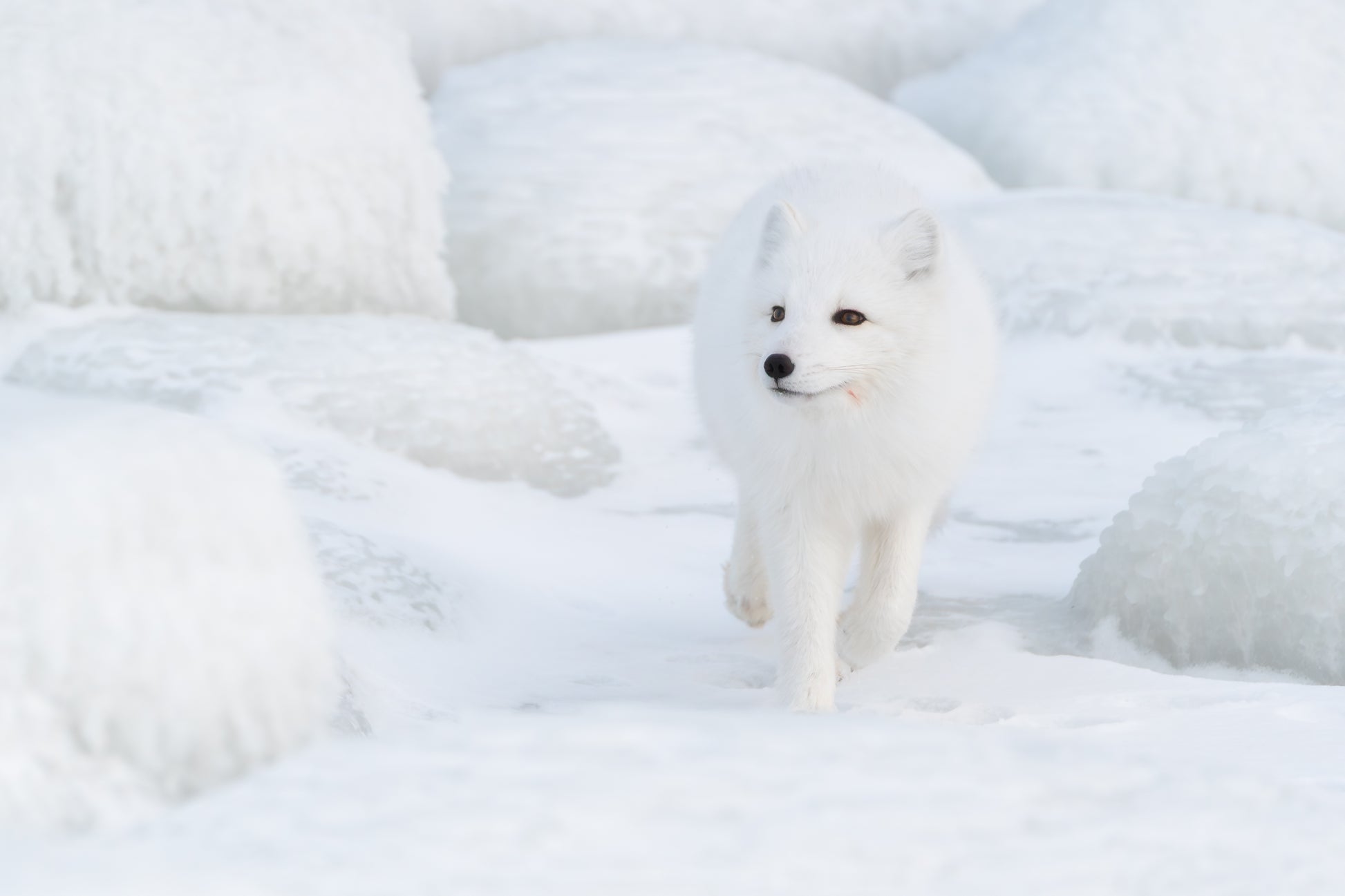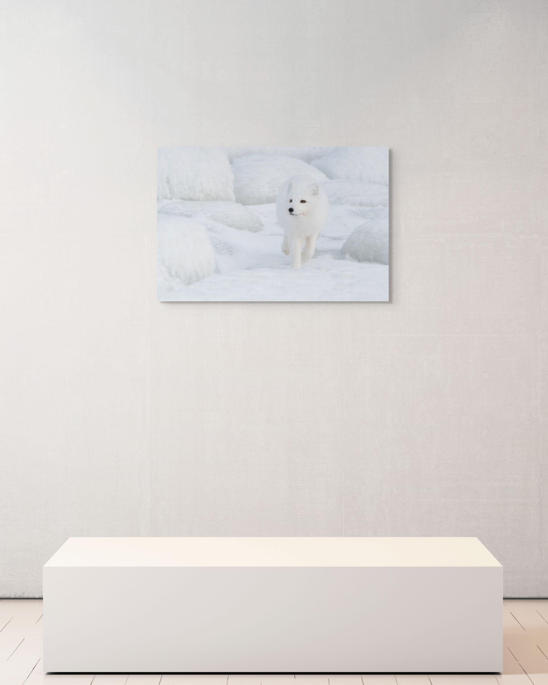 Hunter's Step - An Arctic fox approached with steady ease, its gaze fixed on something far across the tundra horizon. There was grace in its posture, but a faint trace of blood near its mouth quietly reminded that beneath the softness, it remained a hunter.