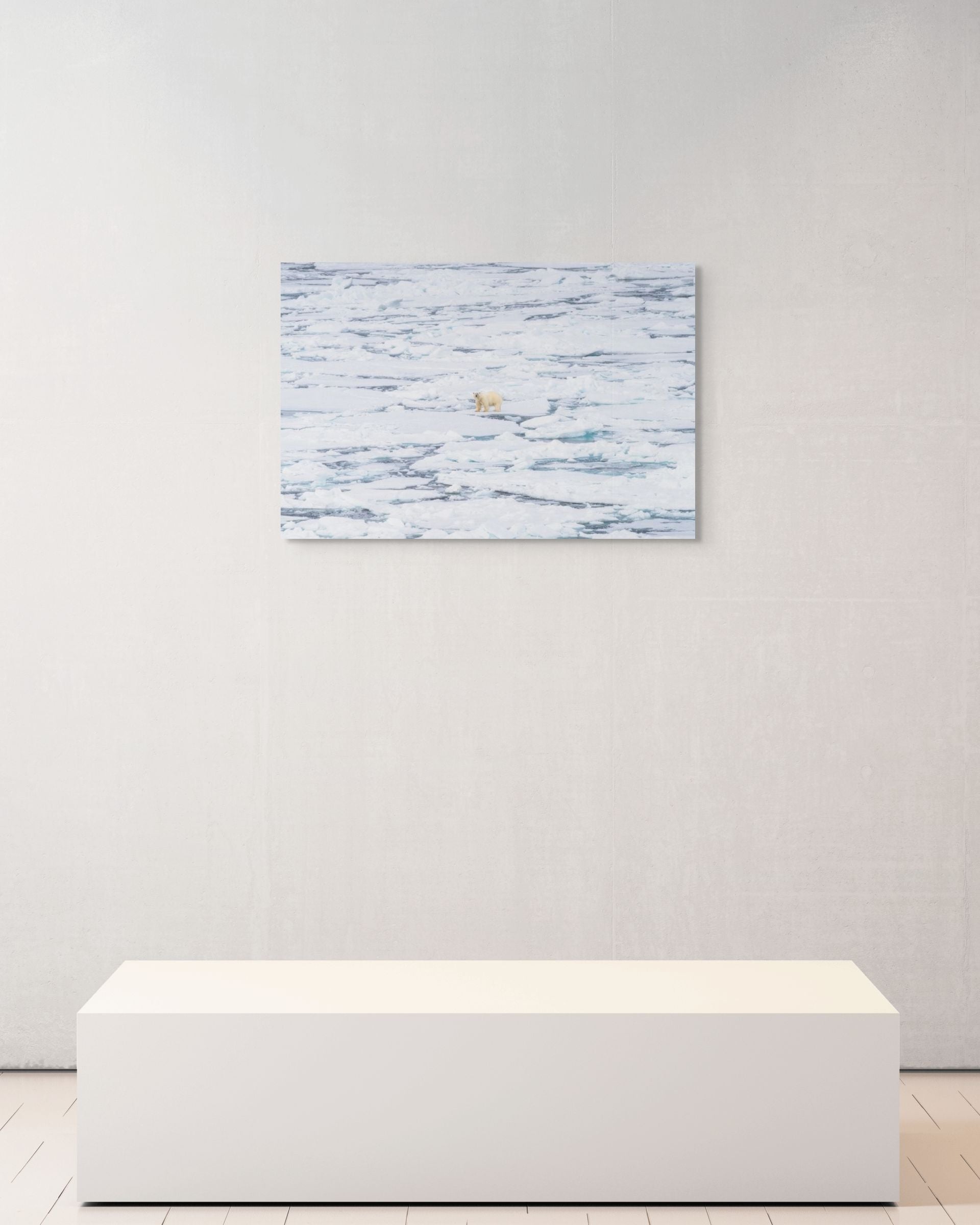 The Wanderer's Gaze – Across the pack ice of Svalbard, a solitary polar bear pauses, its gaze briefly aligned with the lens. A quiet moment in a vast, frozen expanse.